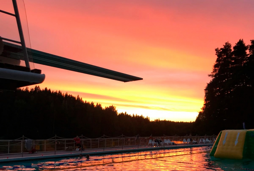 Ahveniston maauimala on tunnelmallisimmillaan elokuun iltavalaistuksessa